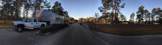 Sunrise this morning at one of the nicest, well-equipped rest stops we’ve ever seen–in Mississippi next to the Stennis Space Center on I-10.