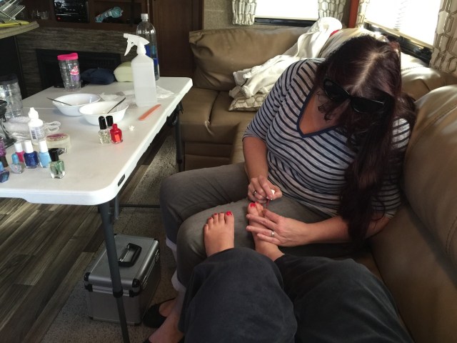 A week long visit with my best friend who drove in to see us. Las Cruces NM is the closest to Denver CO we will be in a long time yet and 5 months since we went on the road. As a parting gift she painted my toe nails. Amy is an awesome licensed nail technician. #wyff