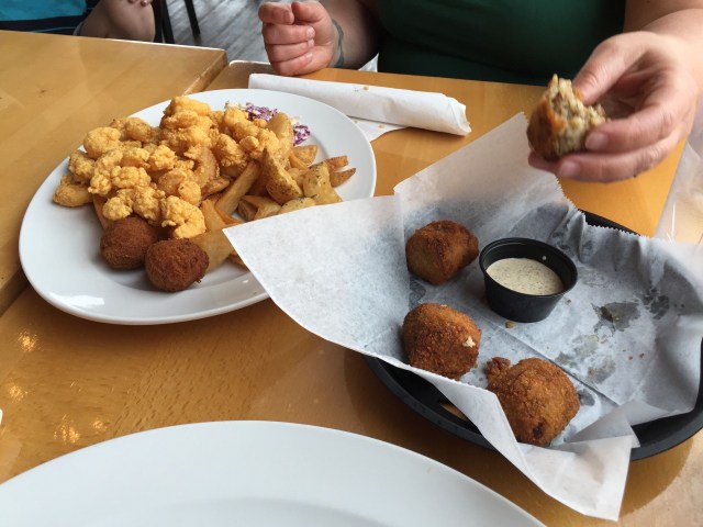 Boudin, popcorn shrimp, hush puppies, and taters…it’s what’s for dinner. You’ll notice the boudin disappeared first.