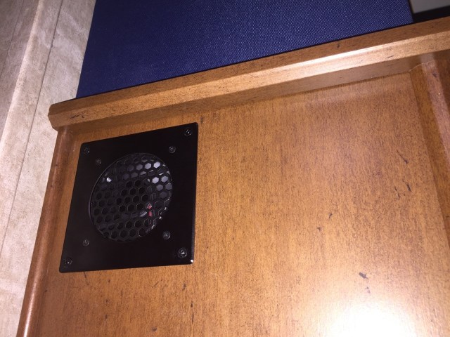 Another RV mod: this is a very quiet, USB-powered fan for the server cabinet. I left enough space to add another if one isn’t enough.