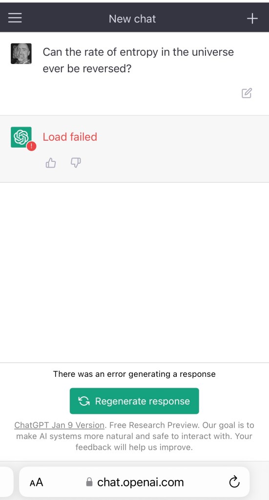 Yes, yes…it’s not the first time it was asked of ChatGPT/OpenAI. It’s still interesting, I think, that a connectivity-related error occurred just as I asked it.
