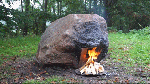 Outdoor installation by Aram Bartholl is a fire-powered wifi router which can make PDFs on survival available when heated: