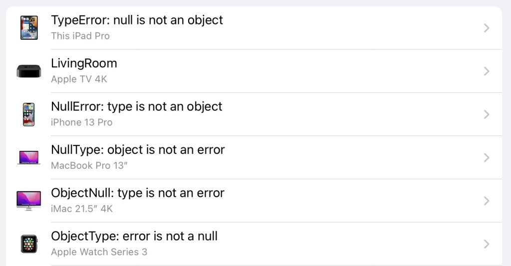 Because I have a strange sense of humor, I renamed my iPad, iPhone, and notebook… with even less meaningful variations of the TypeError: