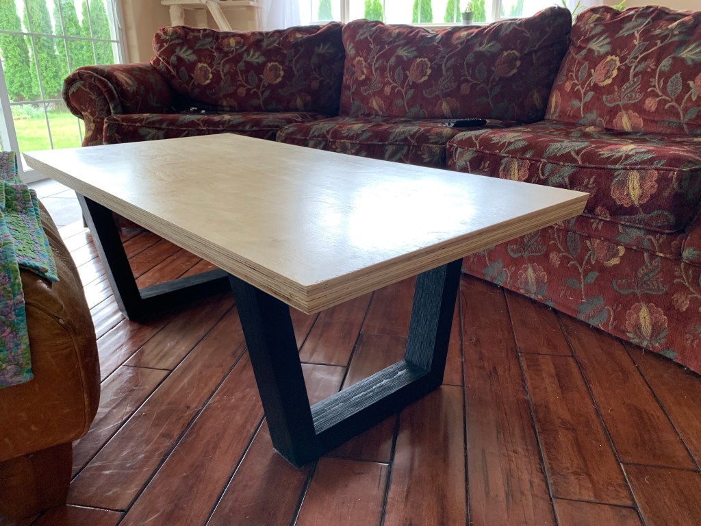 I think on the next, presentation-version of the coffee-table, I’ll use finished Baltic Birch plywood as it has fewer voids and more robust surfaces. Maybe red-oak for the legs, still stained black of course.
